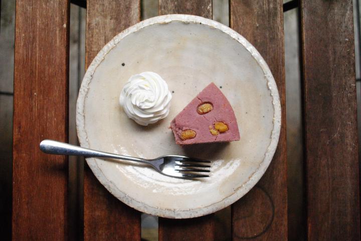 オススメスイーツは、おからと絹ごし豆腐を使った焼き菓子「おからんころん」(490円)。淡いピンク色がかわいい紫イモ風味と、醤油を隠し味に加えた黒ごま風味があります。しっとりとした生地には食物繊維がたっぷり。子どもの握りこぶしくらいの大きさですが、食べ応えもしっかりしています。