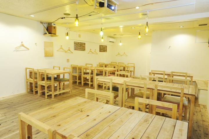 JR高円寺駅の北口から西へのびる中通り商店街“セントラルロード”を歩いて2分。通りに面した入口から階段を上った2階に、オムライスが人気の「kurumari 高円寺店」があります。 お店は2014年の9月にオープンしたばかり。中野の本店に続く2号店です。広いフロアに張られた床板や白く塗られた壁、ナチュラルな机やイスなどの内装やインテリアは、すべてスタッフによる手作りなのだそうです。気取らずに過ごせるカジュアルな雰囲気で、とても居心地のよい空間になっています。