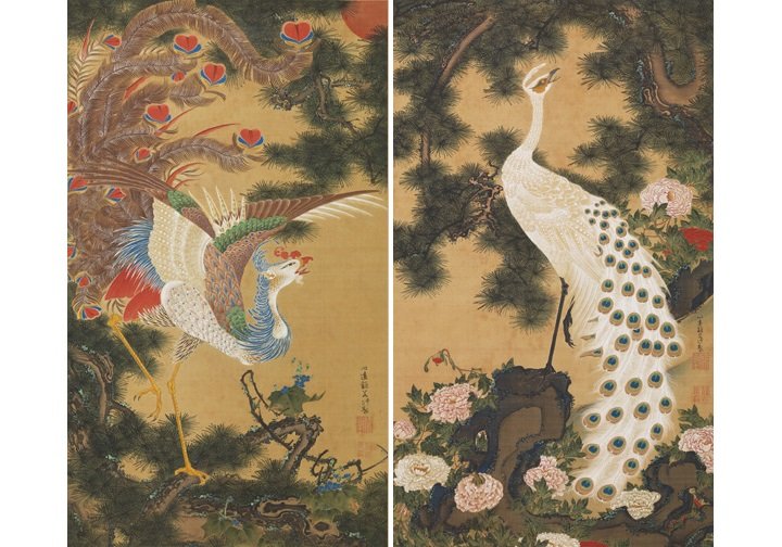 今からちょうど300年前の1716年(享保元年)、後世に名を遺す二人の天才絵師が生まれました。生命の世界を繊細な描写技法で描いた伊藤若冲、そして俳人ならではの詩情豊かな山水人物画を得意とした与謝蕪村です。箱根の岡田美術館では、生誕300年を記念して「―生誕300年を祝う― 若冲と蕪村 江戸時代の画家たち」を開催中。今年4月に東京都美術館で320分待ちを記録した若冲の作品を、ほとんど待ち時間なしでゆったり鑑賞しましょう。 メイン画像:伊藤若冲「孔雀鳳凰図」宝暦5年(1755)頃 岡田美術館蔵