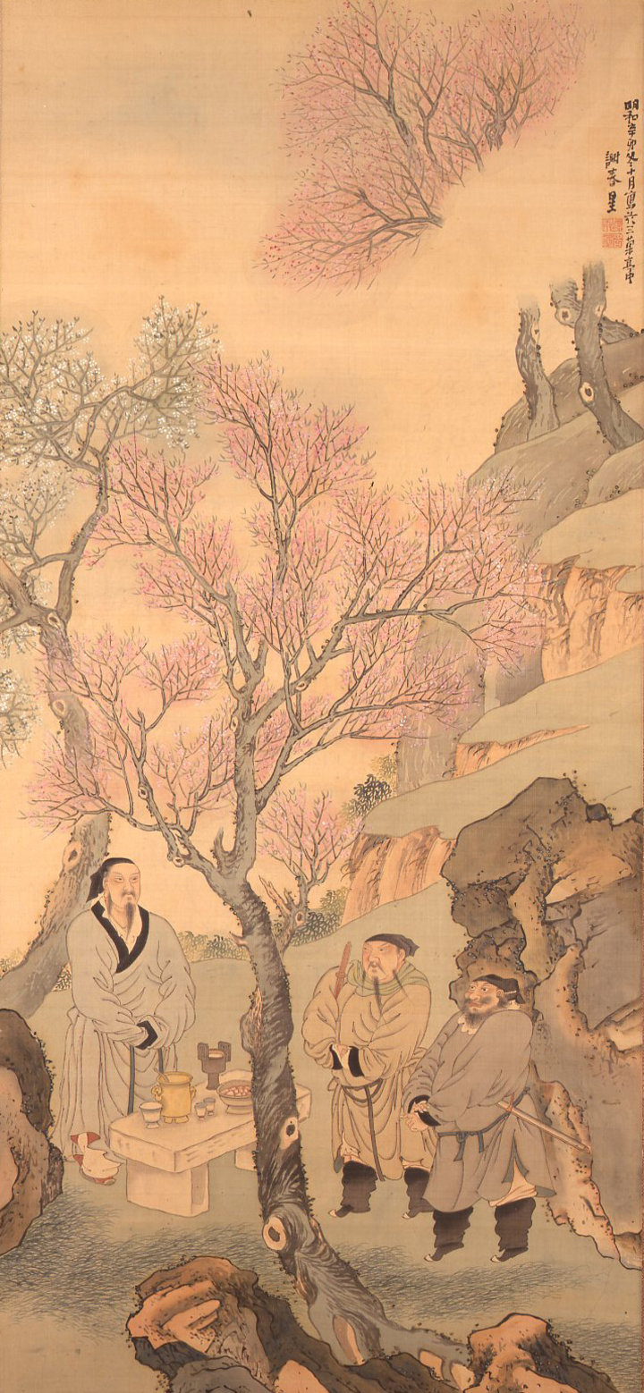 与謝蕪村の作品もゆっくり鑑賞したい 与謝蕪村「桃林結義図」明和8年(1771) 岡田美術館蔵