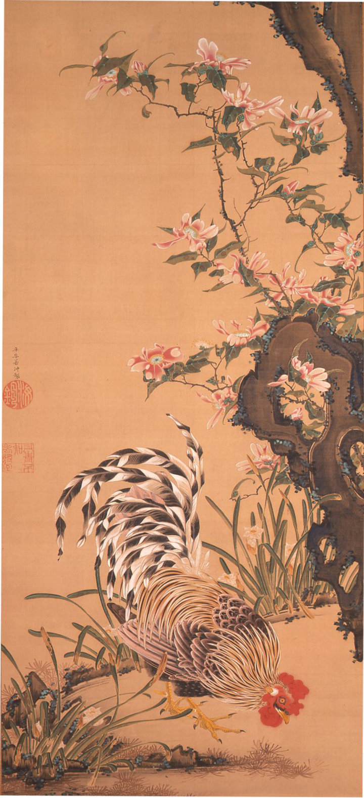 伊藤若冲「花卉雄鶏図」 江戸時代中期 岡田美術館蔵