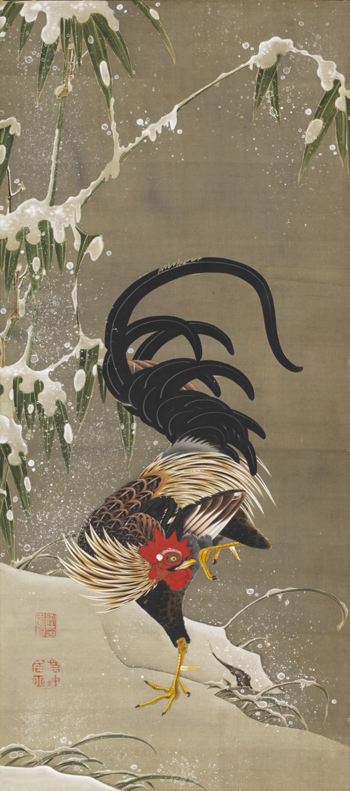 伊藤若冲「雪中雄鶏図」江戸時代中期 岡田美術館蔵