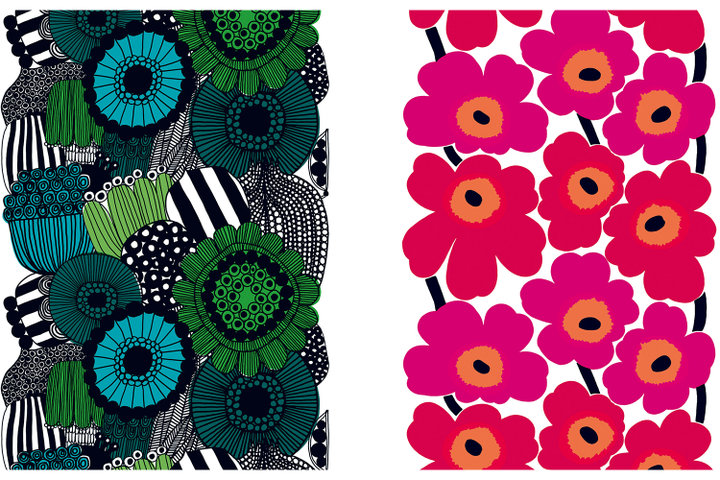 フィンランドを代表する人気ブランド「マリメッコ」。1951年の創業から、現在に至るまでの60年間の歴史や、デザイナーたちの仕事について紹介する国内初の大規模な巡回展『マリメッコ展―デザイン、ファブリック、ライフスタイル』が、12月17日から渋谷のBunkamura ザ・ミュージアムにてスタートします。 画像左:ファブリック≪シィールトラプータルハ≫(市民菜園)、図案デザイン:マイヤ・ロウエカリ、2009年 Siirtolapuutarha pattern designed for Marimekko by Maija Louekari in 2009、画像右:ファブリック ≪ウニッコ≫(ケシの花)、図案デザイン:マイヤ・イソラ、1964年 Unikko pattern designed for Marimekko by Maija Isola in 1964