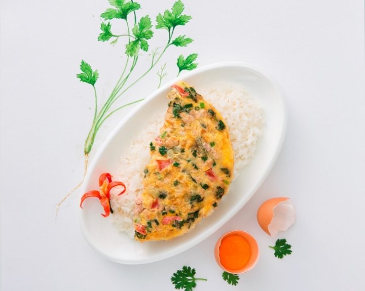 ふわふわのオムレツは、外側はパリッと。シンプルな素材が味わいを引き立てる「コリアンダーのタイオムレツ」(210THB=約630円)