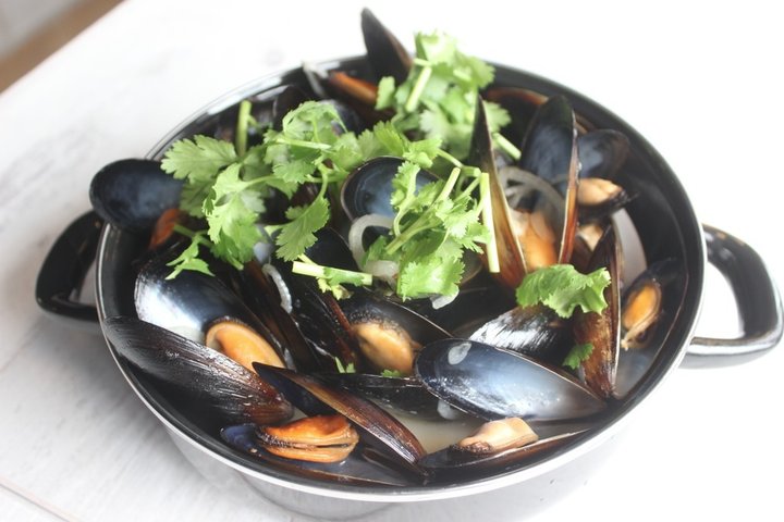 ここに来たら、まず注文したいのが「ムール貝のバケツ蒸し」です。サイズはS・M・Lの3種類。Lサイズには、なんと1キロもの肉厚でぷりぷりのムール貝が入っています。ムール貝のソースは全部で26種類あり、お好みを選んで注文します。 人気のソースはホワイトビール、シェリー酒、レモンとペッパー、ライム風味などのさっぱり系。希望すれば、残ったスープを使ったリゾット(+480円)を注文することも。リゾットには味の濃いソースが合うので、サフランやブイヤベース、ゴルゴンゾーラなどがおすすめですよ。