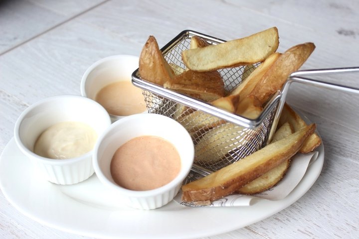 「ムール貝のバケツ蒸し」には、+200円でスモールサイズのポテトフライを付けることもできます。ポテトは、ベルギー産のビンチェ芋。ホクホクとした食感と程よい甘味が楽しめる、世界的にも人気の品種なのだとか。本場ヨーロッパでは、ポテトフライはムール貝のスープに浸して食べるそうです。