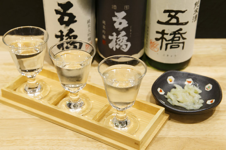 京都駅の近くにある「浅野日本酒店KYOTO」は、店頭のお酒を試飲してから購入できる、日本酒専門店。併設のスタンディングバーでちょい飲みを楽しむこともできます。おすすめの蔵の、同一銘柄の日本酒を飲み比べられる「利き酒セット」は、30mlのお酒3種類におつまみ1皿がついた、16時までのお得なセット。ラインナップは週替わりです。日本酒ビギナーにもおすすめですよ。