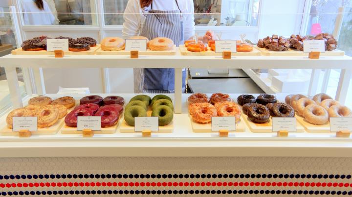 「SPRING VALLEY BREWERY TOKYO」を出て散策路を進むと、アメリカで愛されている日本初上陸のセレクトショップ「Fred Segal(フレッドシーガル)」ブランドのお店が3つ続きます。 「MART」の掛け看板が目印の「THE MART AT FRED SEGAL(ザマートアットフレッドシーガル)」は、スローフードや生活雑貨を集めたお店。 店内には、こちらもアメリカから日本初上陸のドーナツ店「CAMDEN'S Blue ☆Donuts(カムデンズ ブルースタードーナツ)」が入っています。シロップの入ったスポイトが刺さっていたり、チョコレートドーナツにスパイシーなチリが入っていたりと、個性的なドーナツたちは、どれもおいしくてくせになりそうな味。