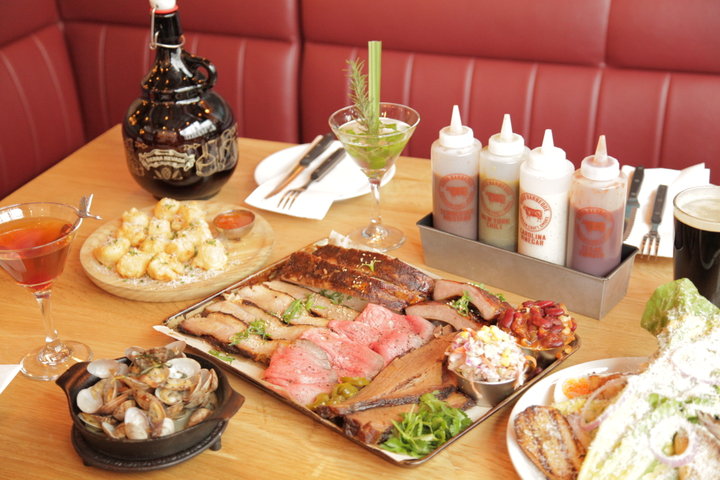 メインのお肉は、何種類ものスパイスを丁寧にすり込んで味付けし、10時間じっくりスモークされています。そうすることで余分な脂が落ち、肉本来の旨みが引き出され、柔らかくてジューシーに仕上がるそう。 忘年会など大人数で集まるときにおすすめなのは、「BBQ5種コンボ」(5140円)。ポークベリー、ビーフブリスケ、バックリブ、アンガスローストビーフ、ポークスペアリブという5種類のお肉を、4種類のソース(マスタード、チリ、ビネガー、トマト)で楽しめます。