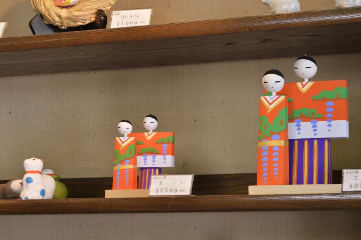 鳥取・信夫工芸店の木工立ちびな。素朴ながら親しみ深いお顔で贈りものにぴったり