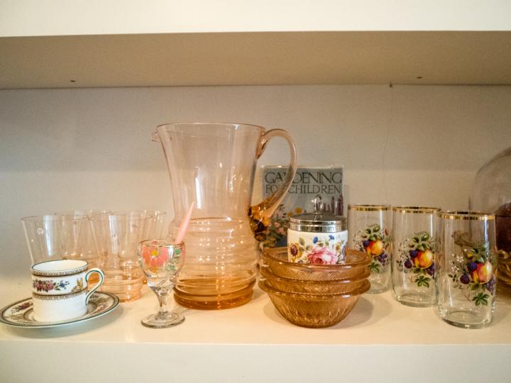 もともと園芸の先生だったマーガレットさんは、花やプラントなどをモチーフとしたものや緑色のものを中心に蚤の市やがらくた市で見かけるたびに買い集めてきたところ、それらがなんとガレージふたつ分ものコレクション数になっていました。 教師生活を引退し、第二の人生として8年前にオープンしたのがこのお店。店内にあるものは、ごく一部を除いて敷物からディスプレイまですべてリサイクルのものを使用していて、自然派のマーガレットさんのポリシーを体現しています。