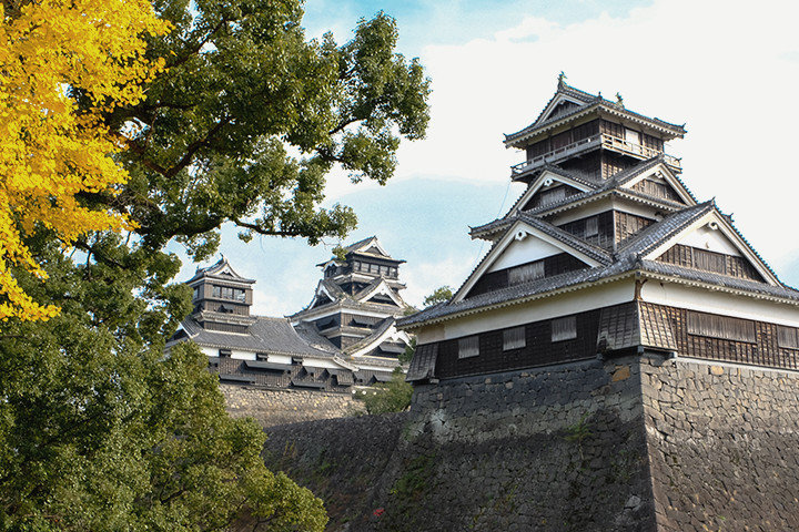 まずは日本三名城の一つ、熊本城へ。一番のビュースポット「加藤神社」を訪ねましょう。現在は地震による損壊部分の修復のため、熊本城内に入ることはできませんが、隣接する神社からその姿を真近に拝むことができます。大きな地震に耐えぬいた宇土櫓(うとやぐら)は、400年前から現存するもの。威風堂々と立ち続ける姿は力強く、眺めているだけでパワーをもらえそうです。