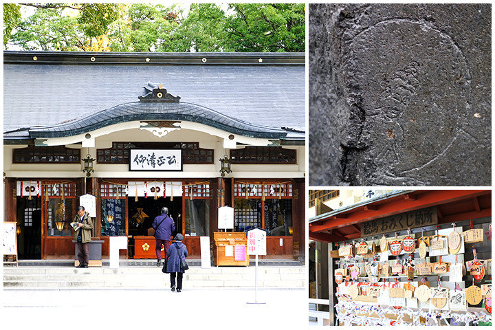 “仰清正公”と書かれた濃紺の旗が目印の加藤神社は、熊本城を築城した加藤清正公を祀る由緒正しき神社。境内では、清正公が手植えしたと伝わるイチョウの木や旗立石などを見ることができます。また、地震で崩れた石垣から発見された、観音菩薩が彫られた石も展示。穏やかな表情の観音様はまるで、人々の幸せを願い、見守ってくれているかのようです。