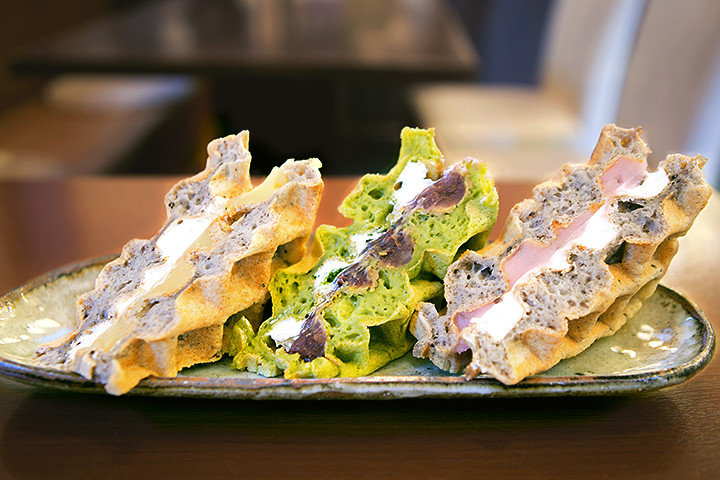 二つ目は、「白玉屋新三郎」の「白玉ワッフル」です。「白玉屋新三郎」は、創業370余年の白玉専門店。上質のもち米を石臼挽きでゆっくりと製粉して仕上げた白玉粉に、老舗のこだわりと技を感じます。 店内で焼き上げるワッフルは、こだわりの白玉粉をたっぷりと生地に練り込んであるため、焼き立てはサクサク、時間がたつともちもちに。甘さ控えめの餡とクリームが絶妙にマッチして、ついつい食べ過ぎてしまいそう。イートインもテイクアウトも可能です。
