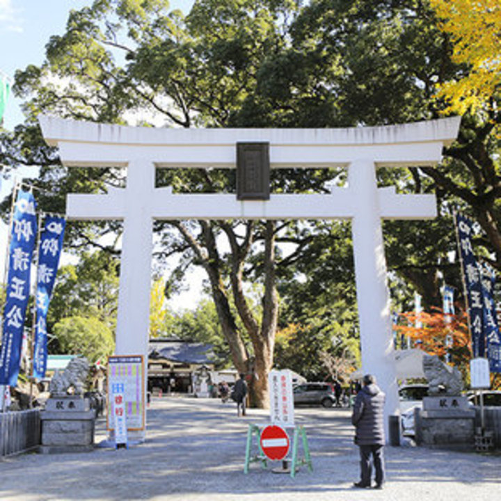 熊本城のすぐ隣に位置する加藤神社。境内は熊本城の撮影スポットとして有名