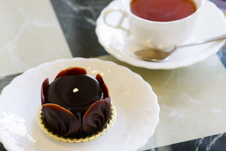 グランプリ受賞ケーキ「アンブロワジー」は、フォークを入れるのがためらわれるほど美しいチョコレートケーキ。 濃厚なビターチョコにピスタチオのムースと木苺のジャムが絡む、絶妙な口どけの一品です。 店内でゆっくり世界トップクラスのケーキを味わってみてください。