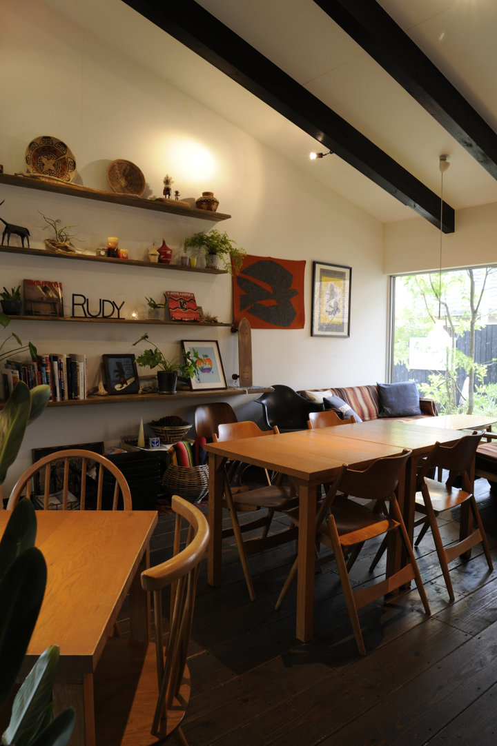 開放感のある高い天井が印象的な店内の「cafe RUDY(カフェ ルーディー)」は、近鉄の西大寺駅から徒歩約3分の住宅街の中に佇むお店。 サラリーマン時代からカフェオープンを夢見ていたご主人が念願を叶えるために奥さまとともに準備し、4年前に開店。ご夫婦との会話も楽しい空間です。