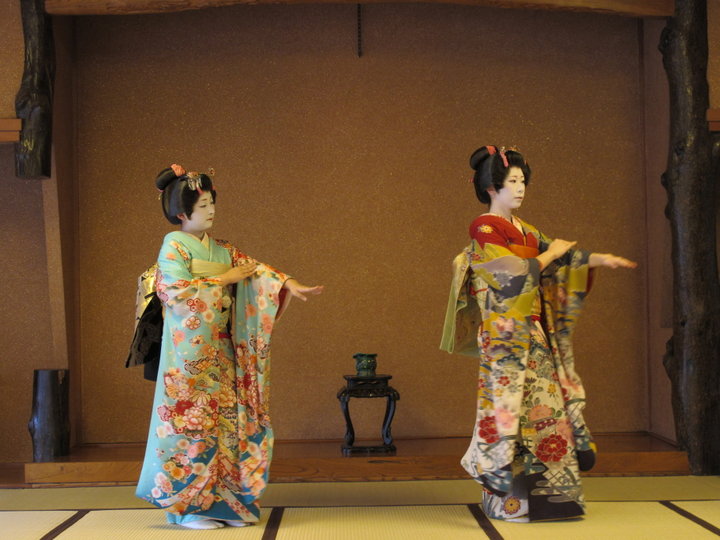 あきた舞妓は現在3名在籍しており、着付けや化粧、日本舞踊、茶道などの稽古に励んで芸を磨き、劇場をはじめ、お座敷やイベントなどさまざまな場面でおもてなししています。「格式は高いまま、敷居を下げて」をコンセプトに、二階にある広さ約80畳もの劇場では、秋田音頭や秋田おばこに合わせて演舞を披露しています。 舞妓の美しい着物姿としなやかな所作、そしてあでやかな踊りを眺めていると、華やかな世界に一気に惹きこまれます。鑑賞後は、記念撮影や舞妓とゆっくりお話することもできますよ。