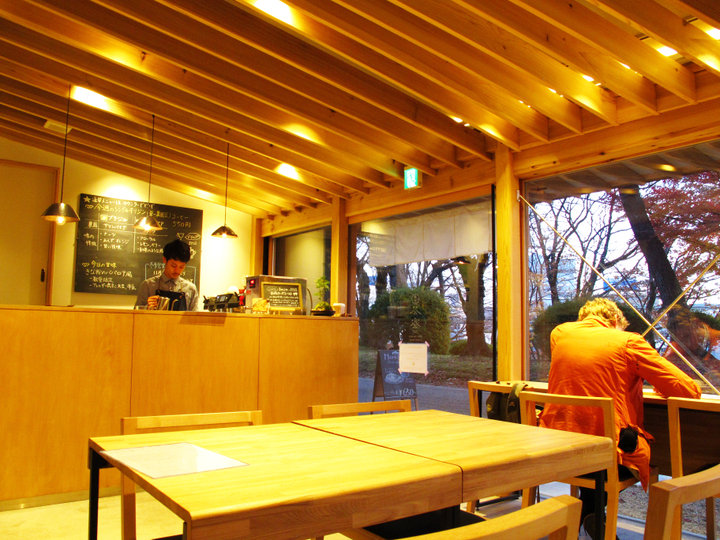 店内は、秋田杉で作られたテーブルや椅子が配され、木の香りが漂う心地よい空間。時間を忘れてゆっくりとくつろげます。
