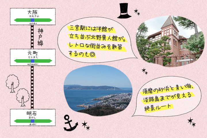 「ラヴニュー」でスイーツを味わった後は、再び元町駅へと戻り、東海道本線に。次の神戸駅で快速に乗り換えて、明石駅へと向かいます。 途中からは海水浴場として知られる須磨の砂浜が。白い砂浜と青い海、その向こうには淡路島が見える絶景スポット。さらに舞子駅では明石海峡大橋の下をくぐります。 明石といえば、ぜひ食べたいのが明石焼きです。卵ベースのふんわり&とろーりの生地の中にタコが入っていて、地元では玉子焼きとも呼ばれているとか。明石駅からすぐの人気店「よし川」へ向かいましょう。
