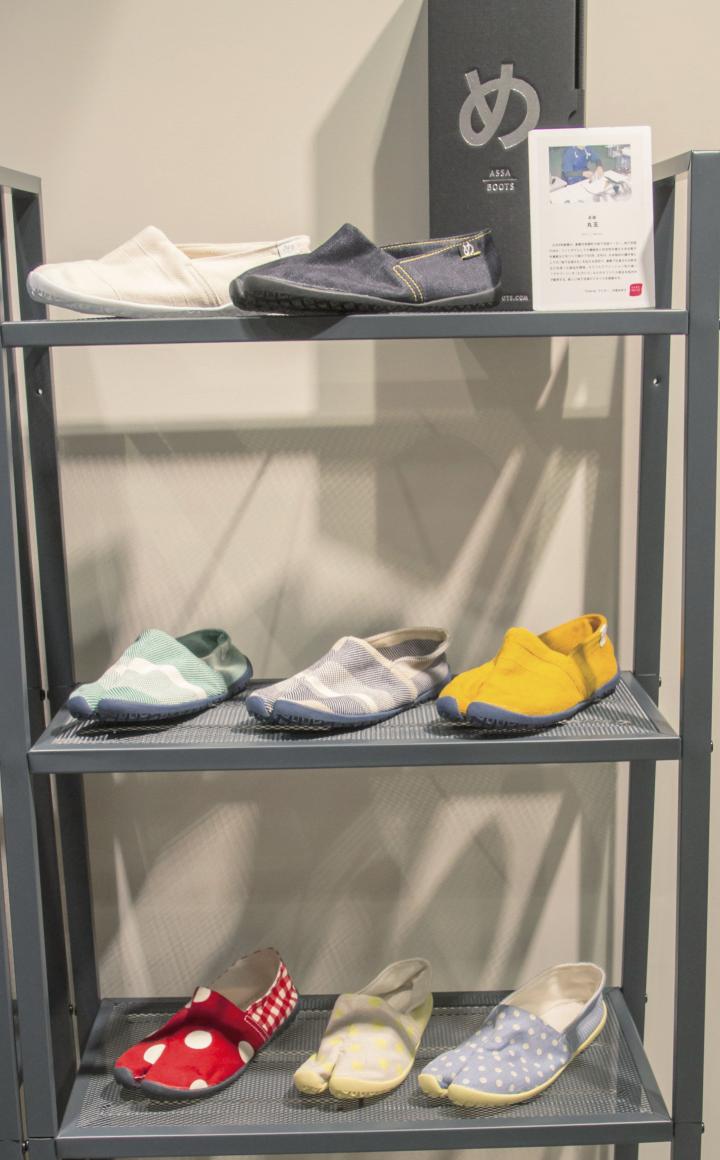 「たびりら」は「ハレマチ特区365」で手に入れることができます。“岡山のものづくり”のセレクトショップであるこのお店で、人気アイテムのひとつです。岡山駅から徒歩約3分「イオンモール岡山」の5階にあり、店内には食品からアパレルまで、こだわりのあるものが多くそろいます。 スタッフで「おくりものマイスター」の大塚小百合さんも「たびりら」の愛用者です。「足の指に力が入って歩きやすいですし、長時間の立ち仕事でも足がラクです」と話す大塚さん。どんな靴を履いても痛みのあった外反母趾のお客さまが、購入してそのまま履いて帰られたこともあるそうです。