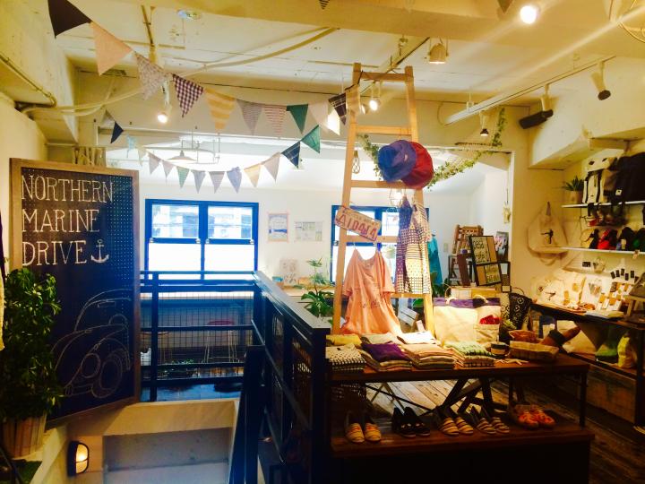 2階には、オリジナルウェアを中心に、雑貨や靴、かばんなどが揃っています。テーマである「MARINE&WORK」の〝MARINE〞はその名の通り〝海〞をイメージ。海を連想させる爽やかなカラーやデザインが刺繍、ボタンホール、シャツの襟部分の色など、あちらこちらに。また〝WORK〞は〝家事〞を意味し、動きやすく着心地がよい普段着を考えて作られています。そのため、お家で洗濯できる洋服ばかり。着たときの心地良さやデザインの一工夫を発見できるかもしれませんね。