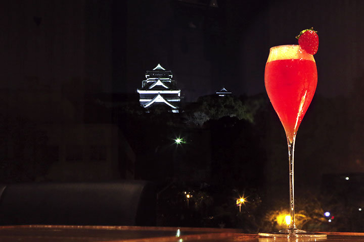 夕食を楽しんだ後は、眺望抜群の路地裏バーで、ゆったりと過ごしませんか? 上通から路地を抜けてすぐの「ESQUINA(エスキーナ)」は、女性のバーテンダーがいるためか、女性のひとり客も多く、旅の夜に一人でも安心して訪れることができるバーです。 お店の魅力は、なんといっても窓から望める熊本城。夜になりライトアップされた熊本城は、しっとりと艶やかです。 くまもとならではの風景を愛でながら、ゆっくりと大人の夜を過ごしてみては?