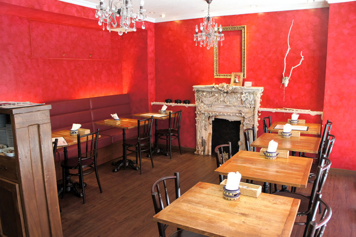 感度の高いセレクトショップが立ち並ぶ「シャワー通り」。この通りの路地裏に、県産食材をふんだんに使った創作フレンチがいただける「カフェビストロ・ショコラ」があります。真っ赤な壁がまばゆい店内をアート作品やシャンデリアが彩る、まるでフランス映画に出てきそうなおしゃれな空間が自慢です。