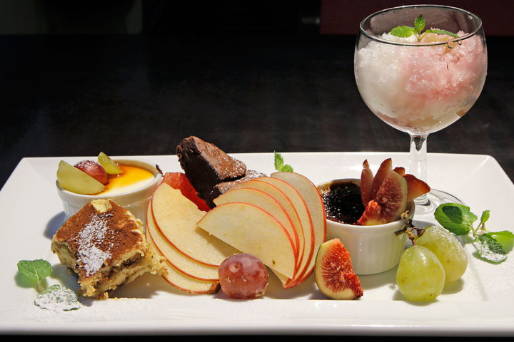 デザートが充実しているのもお店の魅力の一つ。自家製ジェラートやクレームブリュレなど豊富なメニューが揃っています。 「本日の盛りだくさんのデザート盛り合わせ」(1250円)は、お店自慢のスイーツと季節のフルーツがふんだんにデコレートされた、人気のメニューです。