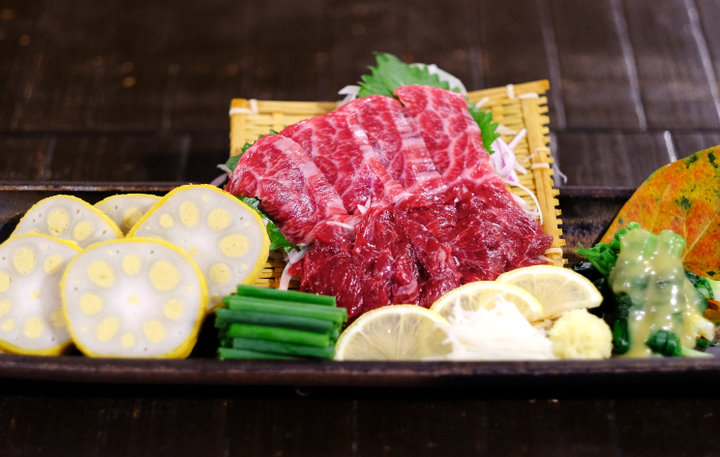 こちらのお店でぜひ食べておきたいのが、くまもとの郷土食を満喫できる「肥後3種盛り」です。 レンコンの穴に辛子味噌を詰め、衣にくぐらせて揚げた「辛子レンコン」、新鮮でヘルシーな「馬刺し」、茹でたヒトモジ(ワケギ)をぐるぐる巻いて酢味噌でいただく「一文字のぐるぐる」が揃ったお得な一皿です。くまもとの焼酎や地酒とともに、くまもとらしい料理を心ゆくまで堪能できますよ。