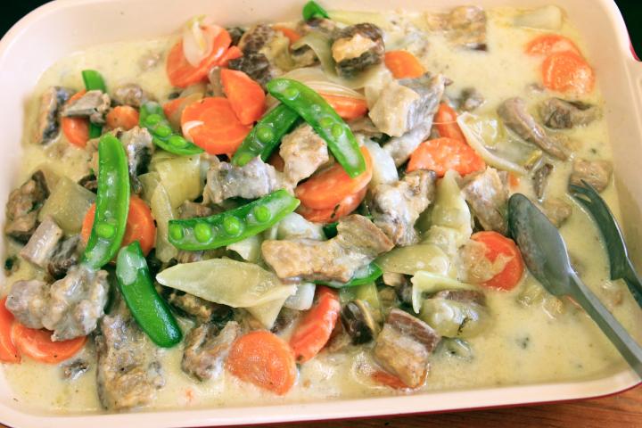 肉の塊と野菜がボリューミーな「牛バラ肉と野菜のフレゼ」(1人前380円)