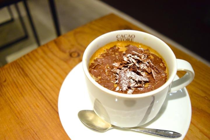 人気ショコラトリー「テオブロマ」の土屋公二氏が手がける「カカオストア」は、代々木公園駅から徒歩1分。厳選されたこだわりのチョコレートが購入できるほか、店内奥のカフェスペースでは、ここでしか味わえないショコラメニューが楽しめます。「ラテショコラート」は、カップにたっぷりのった削りチョコレートとカフェラテが混ざりあい、心身を温めてくれます。