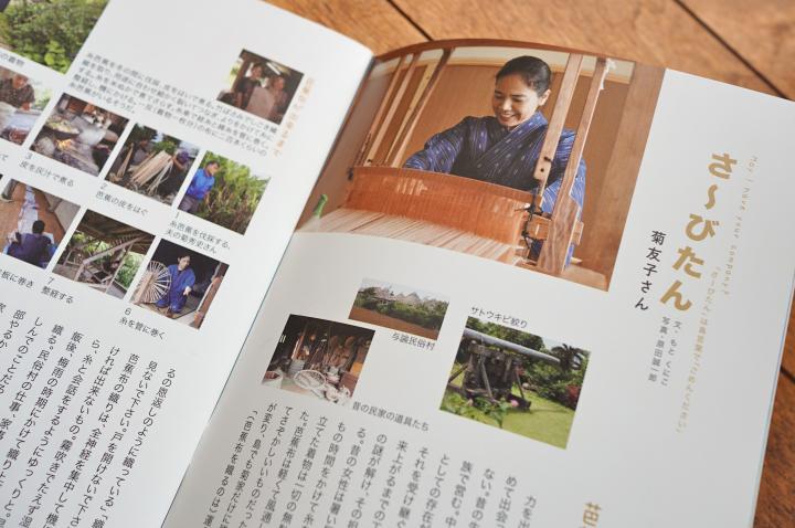 『かなしゃ』は、与論島に旅をする前に読むと、ガイドブックとしても使えます。事前に入手できたら、とっても便利。なんといっても登場しているのは、ほぼ旅で出会える人や場所ばかりだから。 自宅で改めて読んでみると、それ以外に与論島で出会った1つひとつの出来事と重なり合うような物語が描かれていることに気づきます。それは、編集スタッフの面々も私と同様に旅人としてこの島に上陸したからからかもしれません。 旅から戻り、ぼんやりと旅先を思い出す時間は何もしていないように見えて、実は旅先で拾った“気づきの種”に水をあげている気がします。現地で買ってきた情報誌をぱらりとめくり、読んでみると、何気ない文章や、きれいなイラストに、現地での体験を思い出してふっと意味を感じてしまいます。それは作り手のメッセージと読者である自分が交わる貴重なひととき。『かなしゃ』が見つめるまなざしに惹きつけられて1ページ、1ページとめくっていき、ページの中に吸い込まれていくように与論島へーー。冊子の中へと、また旅立ってしまいました。 さて次回は、かなしゃ4号の「さ〜びたん」ページにも登場している芭蕉布織り伝承者、菊友子さんのいる与論民俗村をご紹介します。お楽しみに。