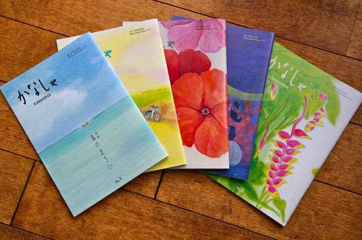 『かなしゃ』は、2010年10月1日に発売を開始した1号から5号まで、1年に1冊ずつ発行している与論島の情報誌。内容は1テーマの特集と、毎回決まった連載もので構成されており、40ページのボリュームです。ちなみに、価格は1冊500円です。 実は、来島する前にこの冊子を取り寄せようと思っていたのですが、どうせなら現地に行って気に入った号を買おうと探してみました。すると、島で訪れたあちこちに置いてあったので、すぐに見つかったのです。ぱらぱらとページをめくって読んでみると、どれも外しがたい内容。ならば、ええいと現在発売されている5冊すべてを買ってしまいました。だって、こんなにカラフルで美しい表紙、どれかひとつでも欠けたらあとから後悔しそうでしょう?