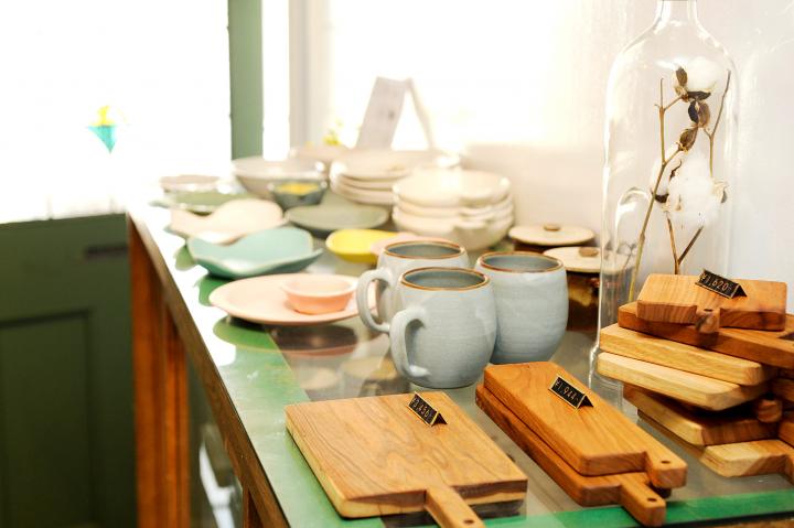 店内に並ぶのは、美容師でもある店長の中山さんが選んだアイテムの数々。自分が好きなものを仕入れていて、テーブルウェアからアクセサリー、ベビーグッズに植物など、さまざまな雑貨がそろいます。 なかでも人気なのが益子焼「よしざわ窯」の器(432円~)です。実店舗がないため、実物を見て購入できるとあって近県からも器を求めてお客さんが訪れています。かわいくてリーズナブルなため、売り切れてしまうこともしばしば。入荷状況はお店のホームページでもチェックできるそうです。 また温もりのある作品が人気の木工作家、小沢賢一さんのカッティングボード(1620円~)やお盆なども取りそろえています。
