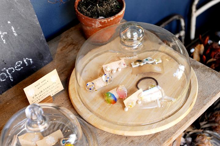 アクセサリーは作家さんのものだけでなく、ヘアサロンのスタッフがハンドメイドした作品(300円~)も販売しています。手先の繊細な作業を必要とする仕事だけあって、細かな部分までていねいにつくられた、かわいらしいものばかりです。 植物はそのままお店に飾られるものあり、プラントハンガーで自分の部屋に飾れば、サロンのおしゃれな雰囲気を再現できます。また、お店で使用しているイタリアのオーガニックブランド「rolland」のスタイリング剤(3200円~)も販売しています。