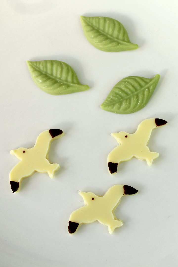 クレープを飾るチョコレートは、どちらもひとつひとつ型を抜いて作っているもの。特にウミネコの抜き型は貴重品。東日本大震災の津波で流されてしまいましたが、撮っていた写真をもとに神戸の業者さんが再現してくれたものだそうです。