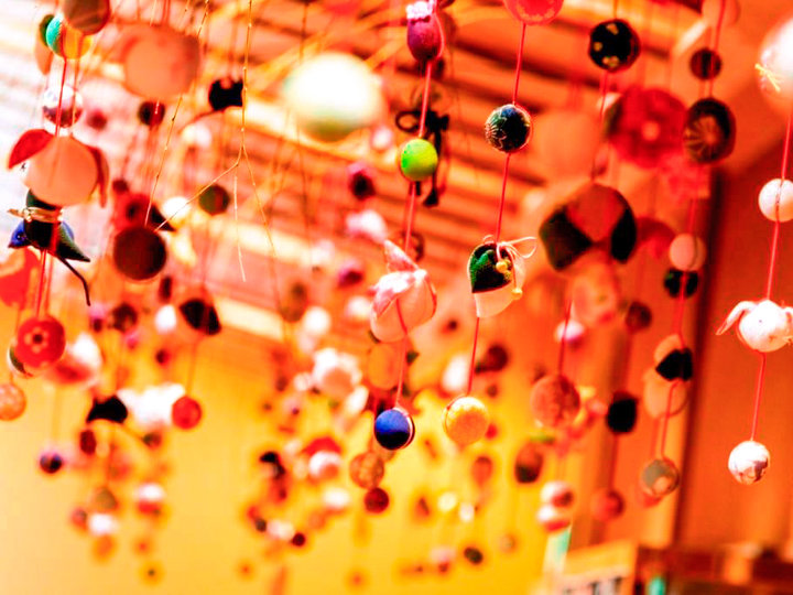 雛人形のほか、スタッフ手作りの吊るし雛も飾られている