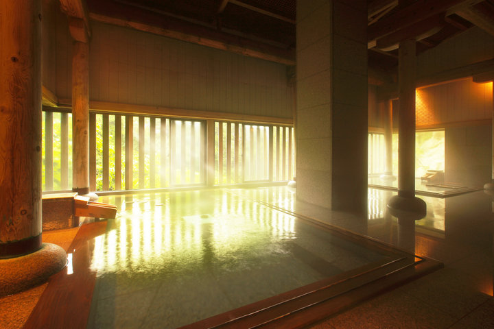 もうひとつは地下3階の「名取の御湯」。ヒノキの香りに満ちた趣ある内湯で、窓越しには名取川を望むこともできます。 「姫の湯」は13時までですが、「名取の御湯」は14時まで入浴可能なので、こちらは食後のお楽しみにとっておくのもおすすめです。
