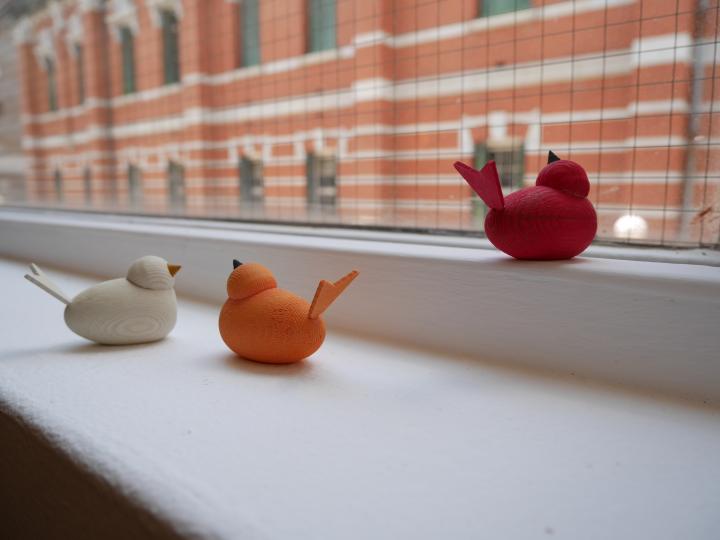 フィンランドに生育するカーリーバーチという木からつくられた「キー リング」(各1620円)は模様がユニークです。白樺の一種で「縮れ模様のカバノキ」との名の通りうねったような木目が特徴で、特に上質だというカーリーバーチのコブからつくられています。豊かな森に囲まれた国ならではのシンプルでナチュラルなアイテムですね。ねこやふくろう、はりねずみの形があって、持てば軽くて木の温もりが感じられます。