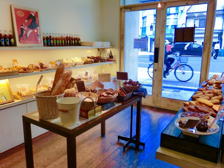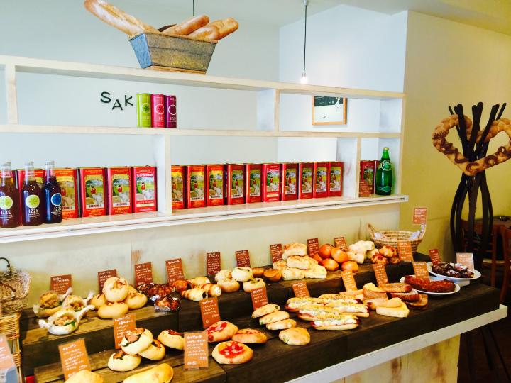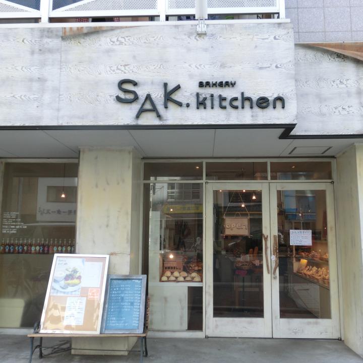 地下鉄堺筋線・堺筋本町駅から徒歩5分。松屋町筋沿いにある大きなガラスの扉と窓をのぞくとたくさんのパンがずらっと並んでいるのが「SAK.kitchen」 です。ガラスの扉を開けるとパンの香りがふわっと漂い、テイクアウトのつもりで訪れても思わずイートインコーナーでひとつ食べてしまいたくなります。