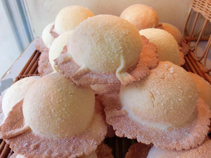 たくさん並ぶパンの中で一際目立つのが、「SAK.kitchen」自慢の「メロンパン」(150円)。大きなクッキー生地で包まれたメロンパンは、上から見るとまるで花の形をしているよう。このメロンパンはオープン当初からお客さんに「かわいい!」と評判で、店内に入ってすぐのところにいつもたくさんのメロンパンが積まれています。 クッキー生地は、中のふわふわのパンと合うように、配合、製法を何度も試行錯誤して誕生しました。甘いクッキー生地のカリカリした食感と中のふわっとしたパン生地の食感の差が楽しく、軽くて食べやすいので朝食やおやつにおすすめ。何より見た目がとてもかわいいので、それだけで気分が上がってしまいます。
