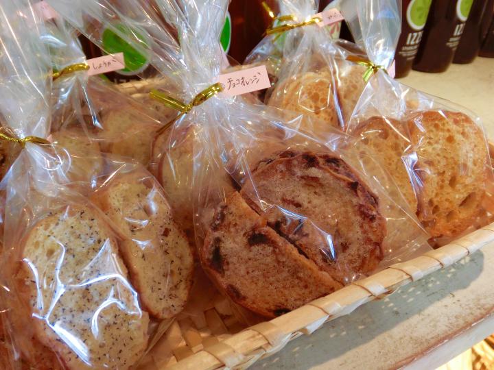 「クランベリー&ホワイトチョコ」(180円)を使った「クランベリー&ホワイトチョコのラスク」(260円)は、なかなかハードな噛みごたえ。その後にクランベリーの甘酸っぱさとホワイトチョコのほんのりとした甘さが口の中に広がります。ハード系のパンが好きな方におすすめです。 他にも「チョコとオレンジのベーグル」(180円)や「くるみパン」(150円)、また、フランスパンにしょうがや紅茶などの味がついたラスクなども含めて、全9種類あります。友人の家に行くとき、お気に入りのパンとそのパンで作られたラスクの両方を手みやげにして一緒に食べ比べしてみても楽しいかもしれませんね。