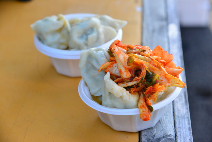 食べ歩きにぴったりの名物グルメもチェックしましょう。おすすめは「豊華」で販売する「水餃子」。手作りする水餃子は、もっちりとした皮にジューシーなお肉がたっぷり。こんもりと盛られたキムチのピリ辛味とも相性ぴったりです。