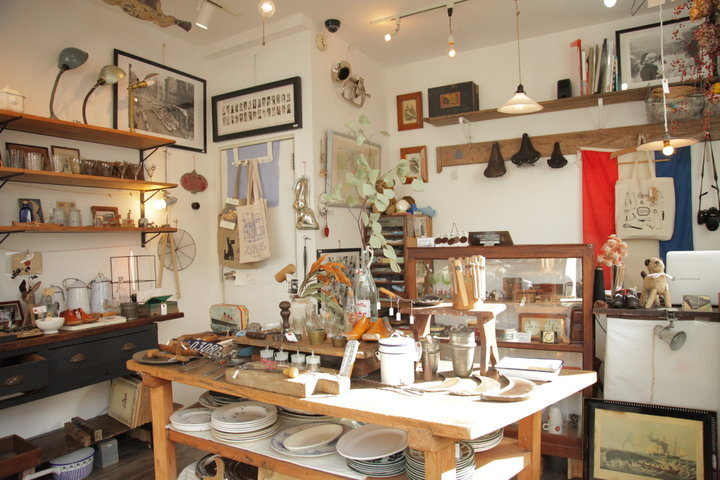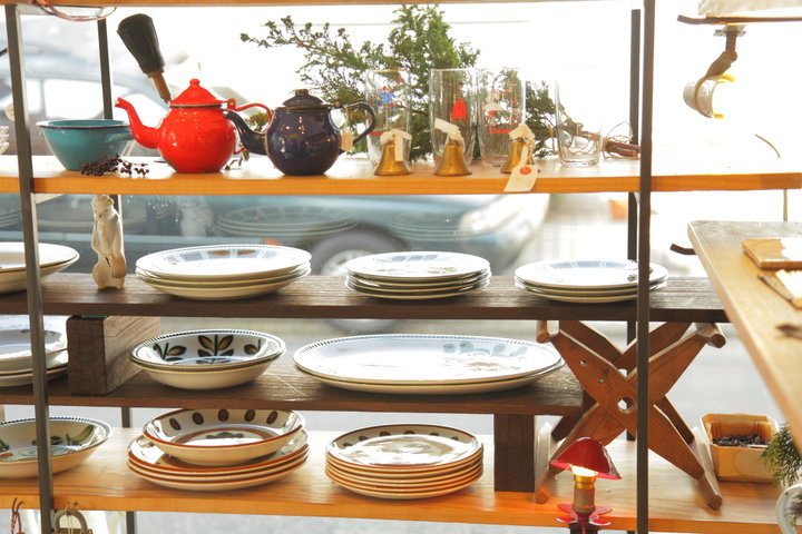 ツバメのマークが目印の「Tsubame Märkt(ツバメ・マルクト)」。ベルギー、オランダ、フランス、ドイツなどの蚤の市で集めたビンテージ食器や古道具が並んでいます。遠い国で大切に使われてきた古くて美しい道具達は、普段使いもしやすくとってもチャーミング。