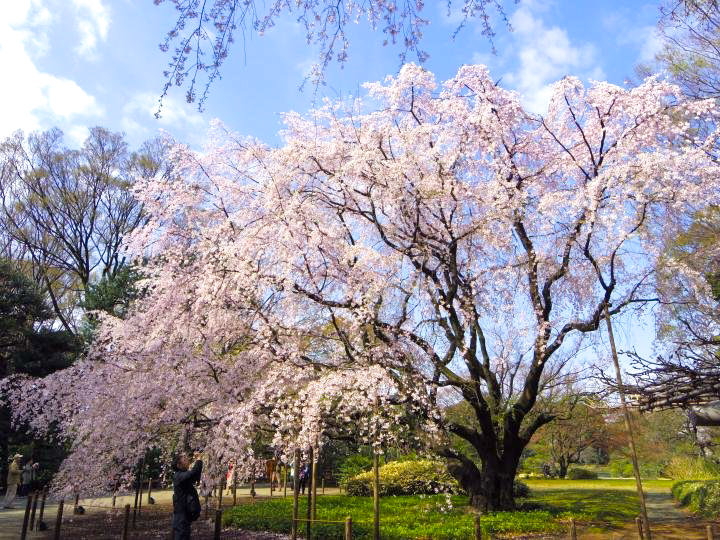 江戸時代を代表する大名庭園である「六義園」は、駒込駅から徒歩7分。来場者が多い庭園ですが、桜の時期は特ににぎわいます。そのお目当ては、園内にある大きなしだれ桜。 昭和30年代に東京都によって植栽されたこのしだれ桜は、樹齢は約70年。高さ約15メートル、幅約20メートルと大きく成長し、例年3月末から枝いっぱいの花を咲かせます。 現在開催中の「しだれ桜と大名庭園のライトアップ」は4月6日(木)まで。期間中は開園時間が21時まで延長され、夜桜も楽しめますよ。