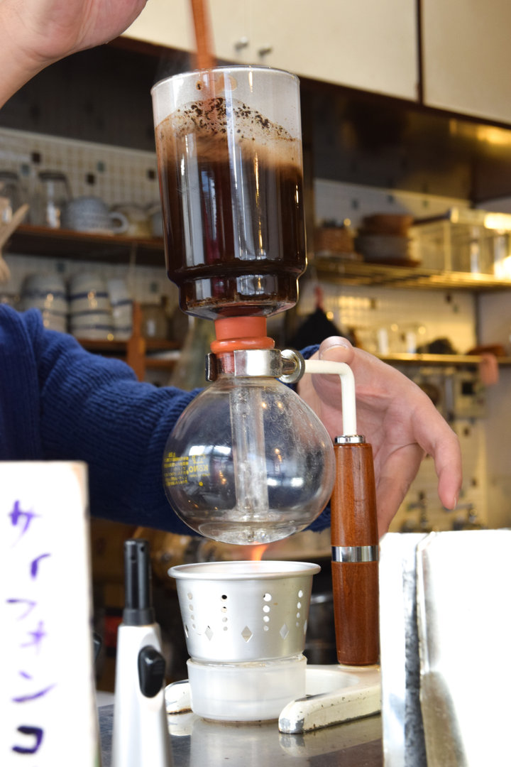 こだわり焙煎所から取り寄せた豆をサイフォンで。「八百コーヒー店」