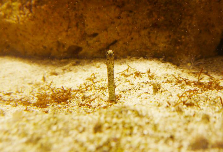 一番有名な温室がこちら「パームガーデン」。1万6000枚の窓ガラスに覆われた室内にはヤシの木やソテツなどを中心に多くの熱帯植物が生い茂り、階段で2階に上がることもできます。温室ならではのむわっとした空気が立ち込め、イギリスから突然、南の島にやってきたかのよう。 温室の中には隠れるように地下フロアもあり、海洋水族館が広がっています。小規模ながら、「サンゴ礁」や「マングローブの湿地帯」といった4つの生息地に分けられたしっかりした構成。カクレクマノミやチンアナゴが穴の中から顔をのぞかせます。 うっそうと茂る植物に気を取られて見逃しがちですが、パームガーデンに入ったら、ぜひ地下フロアもチェックしてみてくださいね。