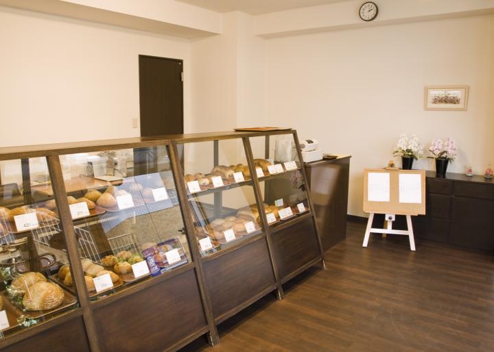 駅から徒歩約5分。お店の扉を開けると、芳ばしい香りとともにガラスのショーケースが目に飛び込んできます。白い壁と木の床のすっきりとした空間で、シンプルな店内です。 こちらの販売方法は対面式。ショーケースにあるパンから欲しい物を一つひとつ注文してお店の方に取ってもらうため、セルフ式のパン店とは違った雰囲気で、ちょっと特別な気分になります。