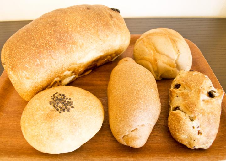ショーケースには、「まるパン」(140円)、「バターロール」(160円)、「あんパン」(170円)、「ライ麦レーズン」(190円)など、約25種類のパンが整然と並んでいます。どれも丸みをおびた形でこんがりときつね色。愛らしい姿で、あれもこれも欲しくなってしまいます。 ふと惣菜パンや菓子パンが少ないことに気づきます。店主の森さんに伺うと、「お客さんにはパンの生地を味わってもらいたいんです」とのこと。こちらでは北海道産小麦を使って生地を作り、自家製の天然酵母でじっくりと時間をかけて発酵させてから焼いています。それによって、小麦がもっている独自の香りや甘みが引き出され、ほかの食材を加えなくても味わい深いパンができあがるそうです。 「あんやレーズンといった食材が入るパンも、生地のおいしさを損なわないように工夫して作っています」と森さん。生地そのものの味を大切にしたいという熱い思いが伝わってきます。